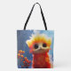 Dieser Totenbeutel hat einen orangefarbenen Kritter darauf.