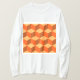 Das Design zeichnet sich durch ein ineinander greifendes Muster heller orangefarbener Würfel aus. Es erinnert an die Kunst des M.C. Escher, aber es verwendet einfach geometrische Grundformen, um einen attraktiven und eleganten Effekt zu erzielen. Es sieht aus wie eine endlose Treppe in verschiedenen Orangetönen.