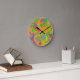 Ein Haufen von bunten Kuchen mit Marshmallows, Schokoladenstars, Herz, Gelee-Süßigkeiten. Sprinkles und Glitzer - fertig zum Essen! Wall Uhr mit einem orangefarbenen, blauen, lila und grünen Design, das für Sie individuell gestaltet werden kann. Andere Stiloptionen sind verfügbar. Ein Originalfoto, das mithilfe digitaler Techniken von Jess Perry stilisiert wurde.