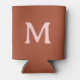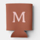 Ein verbrannter orangefarbener Hintergrund zeigt ein hellrosa Monogramm.