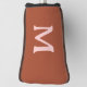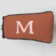 Ein verbrannter orangefarbener Hintergrund zeigt ein hellrosa Monogramm.