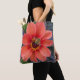 Ihre Auswahl an stilvollen Totentaschen oder Crossbody-Taschen mit einem Überdruck, der das Foto einer großen, orangefarbenen Dahlia-Blume mit einer verschwommenen, kleinen Biene zeigt. Ein lustiges Blumendesign! Wählen Sie Ihre Tasche Stil und Größe.
