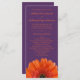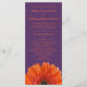 Sie können den gesamten Text auf dieser orange gerbera daisy (gerber daisy) Blume, lila Hintergrund personalisiert erschwingliche Hochzeitsprogramme personalisieren. Das Design ist hell und freundlich, orangefarben auf einem lila Hintergrund. Einfaches und elegantes Blumendesign. HINWEIS: Dies ist ein flaches, bedrucktes Design ohne erhöhte oder 3D-Verzierungen. Um den Text zu ändern, verwenden Sie die Optionen zum Personalisieren. Oder, um größere Änderungen (Schriftart, Größe des Schriftartes, Farbe des Schriftartes, Textplatzierung), wählen Sie anpassen. Sie können sogar die lila Hintergrundfarbe ändern, wenn Sie gewollt haben. Dies ist ein großartiges, preiswertes Hochzeitsprogramm für eine Hochzeit im Frühjahr, Sommer oder Herbst / Herbst oder eine Hochzeit mit einem orangen gerbera daisy Blume Thema.