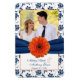 Orange Daisy Navy Blue Floral Wedding Foto Magnet