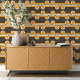 Dieses Design zeichnet sich durch zeitgenössische geometrische Kreise und horizontale Linien in Elfenbeintönen aus, und gelb orange auf einem dunkelbraunen Hintergrund. Es ist ein verziertes, elegantes und dennoch funky-Hipster-Muster, das sich perfekt für den künstlerischen Innenarchitekten, die künstlerische Mode, den trendigen Hipster, Liebhaber Vintager Retro-, Nouveau-Deko-Kunst oder abstrakte geometrische Motive eignet. Es ist in einer Vielzahl von modernen Wohngestaltungen erhältlich, ideal für die Dekoration eines Master-oder Kinderschlafzimmers, Küche, Kinderzimmer, Wohn- oder Familienzimmer, Frauenhöhle, Uni Studiowohnung oder Appartement.