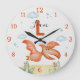 Orange Dinosaur Nursery Wall Clock Personalized Große Wanduhr