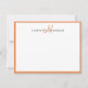 Orange einfache chic minimalistische Monogramm-Bez Mitteilungskarte