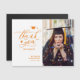 Orange Elegant Script Foto Minimalistischer Abschluss Danke Magnetic Card. Gib Wow 'Danke' an deine Familie und Freunde mit dieser schönen Danksagkarte. Alle Texte sind so vorbereitet, dass Sie sie einfach und schnell mit Ihren eigenen Worten personalisieren können.