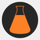 Schwarzer Aufkleber mit orangefarbenem Erlenmeyer-Kolben.