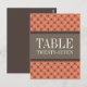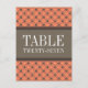 Trendy und schicke Extravagante Lattice Tischnummer Postcard mit einem stilvollen Kreis und einem rautengedeckten Muster auf einem lebhaften, nekrotarinen, orangefarbenen Hintergrund mit einem breiten, zweifarbigen, braunen Rahmen. Diese elegante Tischkarte eignet sich perfekt für eine moderne Hochzeit. Einfach anzupassen, fügen Sie einfach die passende Tischnummer(en) in das Textfeld ein. Klicken Sie auf "Anpassen", um weitere Personalisierungsoptionen zu erhalten.