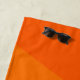 Dieses Strandtuch ist geometrisch in vier orangefarbenen Tönen gestaltet, die horizontal verlaufen.