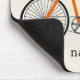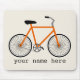 Ein mousepad, das eine Illustration eines orange Fahrrades kennzeichnet.