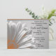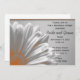 Einladend zu einer Ansammlung im Vorfeld der Hochzeit, die Braut und Bräutigam würdigt, um mit den klassischen Orange Floral Highlights Hochzeit Probe Dinner Einladung. Dieses elegante Party mit Blumen lädt mit einem digital verbesserten Blumenfoto von einer gerbernen, blühenden Blume mit orangefarbenen Highlights und einem silbergrauen Hintergrund ein.