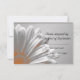 Passen Sie die hübsche Orange Floral Highlights Wedding Response RSVP Card mit Ihrem Heiratsdatum an. Diese elegante botanische v.p.-Karte verfügt über ein digital erweitertes Blumenfoto eines gerbernen Sticks mit einem orangefarbenen Farbton und einem silbergrauen Hintergrund.