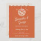 Retro Groovy 70er Niedlich Ivory Orange Disco Hochzeitsfeier mit Foto Back