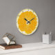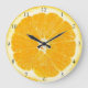 Diese ungewöhnliche Uhr mit dem Bild eines orangefarbenen Schnittes auf dem Gesicht sieht perfekt in Ihrer Küche oder im Speisesaal aus.