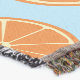 Ein orangefarbenes Fruchtsommer. Ein schönes Design für Liebhaber von Orangen und Zitrusfrüchten. Farbenfrohe Sommer-Orangenfrucht-Illustrationsmuster mit Orange- und Pastellblau. Niedliches Design für Feinschmecker oder Obstliebhaber. Sommervibes! Ideales Geburtstagsgeschenk, Kinderzimmer-Dekoration, Kinderspielkunst, Wohngestaltung, Weihnachtsgeschenk oder Geschenk für jeden anderen besondere Anlass.