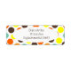 Diese Rücksendeadressen-Aufkleber haben eine geometrische Gestaltung mit blauen, orangen, gelben und braunen Punkten.