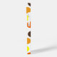 Dieses Gehäuse ist geometrisch mit blauen, orangen, gelben und braunen Punkten gestaltet.