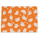 Dieses Design zeichnet sich durch ein spielerisches Halloween-Motiv mit einem lebhaften, orangefarbenen Hintergrund aus. Das Design präsentiert eine Reihe niedlicher, kartoonischer Geister in sanften, cremefarbenen Tönen. Jeder Geist hat einen einzigartigen und liebenswerten Ausdruck, der von fröhlich und lächelnd bis leicht überrascht oder schläfrig reicht. Zwischen den Gespenstern sind kleine, skurrile Sternenformen in blassgelber Farbe untergebracht, die dem Gesamtbild eine Touch von Magie und Spaß verleihen. Das Muster strahlt einen hellen und festlichen Geist aus, perfekt für die Halloween-Saison.