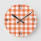 Orange Gingham Clock Runde Wanduhr