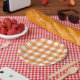 Orange Gingham Teller, um die Wasserfarbe Unsere kleine Pumpkin Orange & türkise Pumpkin Harvest Truck, Fall Pumpkin Patch Babydusche Collection