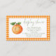 Orange Gingham Little Süsse Display Baby Shower Shower Shower ist in einem stilvollen Set-Skript. Personalisieren Sie die Erholung des Textes nach Bedarf. Verdopplung als Geschenketikett, mit dem der Gast seinen Namen auf die Rückseite setzen und sich an sein unverpacktes Geschenk anhängen kann. Mit einem orangefarbenen Gingham Hintergrund und einer süßen Aquarellorange Abbildung.