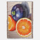 Dieses Aquarellbild erfasst die Schönheit und den Reichtum der Orangen. Die Orangen werden in verschiedenen Orangetönen, von hellgelb bis tieforange, gerendert. Die Blätter sind üppig grün und der Hintergrund ist sanft blau.
