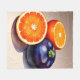 Dieses Aquarellbild erfasst die Schönheit und den Reichtum der Orangen. Die Orangen werden in verschiedenen Orangetönen, von hellgelb bis tieforange, gerendert. Die Blätter sind üppig grün und der Hintergrund ist sanft blau.