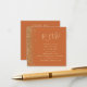 Die links Seite dieser eleganten, modernen Hochzeitswebseiten-Umzäunungskarte weist einen vergoldeten Glitzer-Rahmen für Imitate auf. Der Titel erscheint in einem blassgoldfarbenen Handschriftenskript, mit dem unten in Kopperplate-Schriftart auf einem verbrannten orangen Hintergrund anpassbarer Text angezeigt wird. Laden Sie den QR-Code Ihrer Hochzeitswebsite hoch, um das Beispielbild auf der Rückseite zu ersetzen, gerahmt durch die Worte "scanne mich auf UAWG".