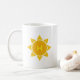 Personalize your drinkware in a simple way with this Orange Gradient Sun with Single Letter Monogram Mug. The front features a minimalistic gradient orange sun, dark in the middle and approaching yellow at the tips of the rays, built from clean geometric shapes. In the center sits a bold yellow monogram letter of your choosing.