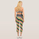 Das Design der Leggings ist in Orange, Grau, lila, dunkelgrün und weiß gestrichen.