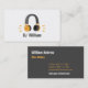 Eine einfache Visitenkarte mit einem grauen und orangefarbenen Kopfhörer. Farbpalette aus Orange, Schwarz, Grau und Weiß. Ideal für DJs und solche in der Musikindustrie.