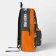 Orange puffing steam train boys backpack. Personalize with your child's name, perfect for library or school. Currently reads Braydon and Braydon on boiler plate plus Braydon - Super Ferroequinologist along the top flap, add your own name maybe your family name class and own message. Part of the kids graphic steam train range. Background color can also be changed to your own color choice currently in dark gray. A perfect gift for boys to take to school or as a gift to a train or railway transport fan. Original steam train graphic art and design by Sarah Trett exclusively for www.mylittleeden.com on zazzle.