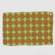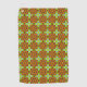 "Brightly colored towels and washcloth with intricate geometric patterns in orange, green, and blue. The vibrant design adds a lively, artistic touch."