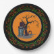Orange Green Black Cats Grabstein Tree Halloween Pappteller