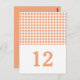 Einfache, aber elegante Hahnentrittmuster Tischnummer Postcard mit trendigem Hahnentrittmuster-Hintergrund in Orange und Weiß. Einfach an Ihre Hochzeitsdetails anpassen. Klicken Sie für weitere Anpassungsoptionen auf die Schaltfläche Anpassen.