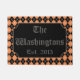 Ein orangefarbenes und schwarzes Muster schmückt dieses Halloween-Begrüßungstor. Personalisieren Sie diese Tür, indem Sie die Informationen ändern, um Ihre Bedürfnisse Anzug. Das Design stammt aus der Originalkunst.