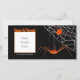 Zwei orangefarbene Halloween-Spinnen im Netz versuchen, spukhaft zu sein! Ein tolles Halloween-Foto für Kinder. Ändern Sie den Beispieltext nach Ihren Vorlieben.