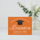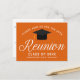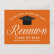 Eine klassische Wiedersehen-Party Einladung-Postkarte in Orange und Weiß für eine High School, Uni oder Universität. Anpassen mit Ihrem Schulnamen und schließ-Klasse unter der eleganten Kalligrafie für große personalisierte Alumni-Feiern laden Postkarten ein.