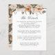 Diese elegante Aquarellingerkarte mit grünen, grünen, orangefarbenen und moosgrünen Blumenblättern zeigt eine botanische Grenze von delikaten Blume auf der Oberseite Ihres gewünschten Textes. Ideal, um die Gäste über Hotelunterkünfte, Gruppencodes, Transport, Anfahrtsbeschreibung, Informationen zum Empfang und Ihre Hochzeitswebsite zu beraten. Angezeigt für anspruchsvolle Hochzeit oder chic Feiern zu jeder Zeit des Jahres. Kartenrückwärtsgang zu einem entsprechenden Blume-Muster in derselben Erdfarbenpalette auf einem moogrünen Hintergrund