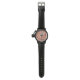 Armbanduhr mit schwarzen Ziffern, die ein Bild des abstrakten Musters des orangefarbenen Jasper-Steins zeigt. Wählen Sie Ihre Uhr aus verschiedenen Stilen. Ein tolles Geschenk für den Rockhund! Bitte beachten Sie, dass in dieser Uhr kein echter Stein ist.