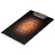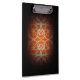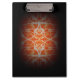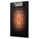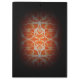 Glühendes orangefarbenes Kaleidoskopmuster auf schwarzem Hintergrund