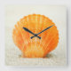 Orange Kamm-Muschel-Muschel-stehende Senkrechte im Quadratische Wanduhr