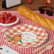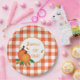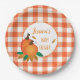 Diese Teller sind in Orange und Weiß gehalten und eignen sich ideal für jede Herbstfeier (Babydusche , Geburtstag , Fundraising , Halloween , Erntedank , Freundschaft , etc), die Sie vielleicht schon einmal erleben werden. Es hat ein klassisches Gingham-Muster , zwei Kürbisse und ein paar braune Herbstblätter . Personalisieren Sie mit einem Namen und Ereignisinformationen mithilfe der Vorlage. © ArianeC Illustrations-Alle Rechte vorbehalten