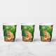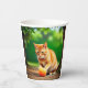 Diese Papiertassen sind mit einer niedlichen orangefarbenen Tabbattacke ausgestattet, die mit einem Streichkugel spielt.
