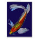 Ein einfaches Zen-Feng Shui Aquarellbild, das von der Künstlerin Sacha Grossel von einem orangen japanischen Koi-Karpfenfisch gemalt wird, der flussabwärts auf einem individuell anpassbaren Hintergrund schwimmt. Dieses einfache Koi-Design ist künstlerisch mit einem orientalischen, asiatischen oder japanischen Kunstthema