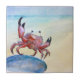 Orange Krabbe auf der Strand-Fliese Fliese