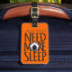 Kühne orangefarbene Gepäckmarke großartig hell gefärbt mit dem Namen ID-Tag, um Ihnen zu helfen, Ihren Fall zu finden. Personalisieren Sie mit Ihrem Slogan auf der Vorderseite und vollständige Adresse auf der Rückseite. Derzeit liest Langstreckenfluggast brauchen mehr Schlaf. Spaß Text Slogan Tag leicht zu finden ideal für schlaue Langstreckenläufer Flyer, die noch ein Gefühl von Spaß nach einem langen Flug. Kühnes gähnendes Design von Sarah Trett.