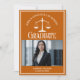 Diese benutzerdefinierte orangefarbene Jurastudienkarte zeigt eine weiße Typografie für einen 2025-Absolvent der Abschluss-Klasse über Ihrem studentischen Foto. Passen Sie mit Ihrem geschlossen Jahr unter den Maßstäben der Justiz und fotografieren Sie für einen großen personalisierten Anwalt oder Anwaltsausweis.